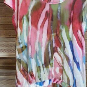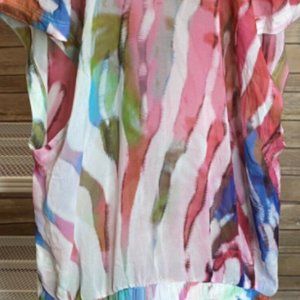 Details:- Scoop neck- Cap sleeves- Shoulder cutout detail- Elasticized waist- Ruched sides- Allover print- Approx. 35" length- Imported