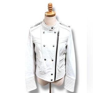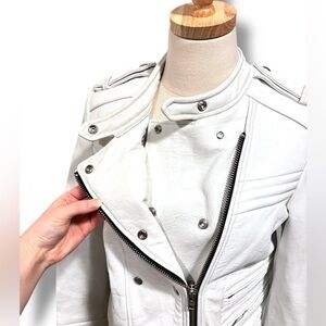 IRO Rojan White 100% Lamb Leather Moto Biker Jacket Size 40