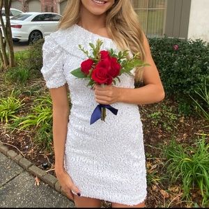 White sequin one shoulder dress! Perfect for homecoming or any other dressy event!!