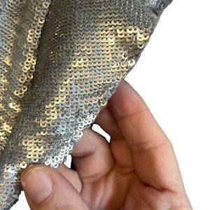 Silver Iro Dwino mini skirt with sequin embellishments throughout, ruffle shoulder straps and concealed zip closure at side.