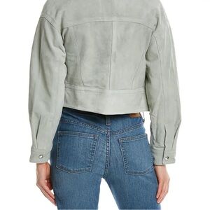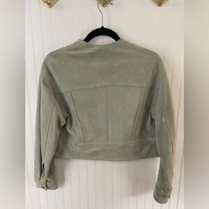 IRO Suede leather jacket in sage green. 100% lamb skin. Silver snap cuffs. Ideal for layering in fall/spring. In great condition.