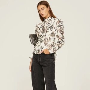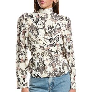The double-wrapped waist on this top by IRO plays with the abstract print to create a snatched waist silhouette.