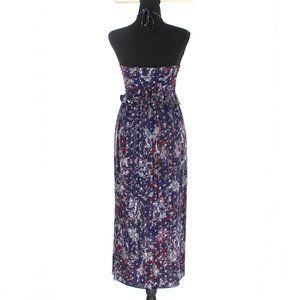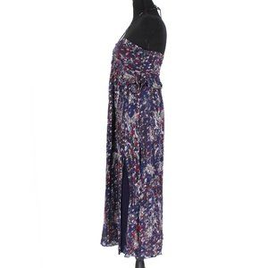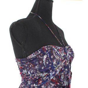 IRO Samov Navy Paisley Silver Metallic Halter Dress 42 Front Panel Midi Large