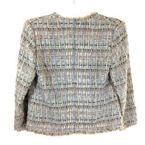 IRO Shavana Tweed Bouclé Metallic Plaid Jacket Fringe Trim Open Front Size 38