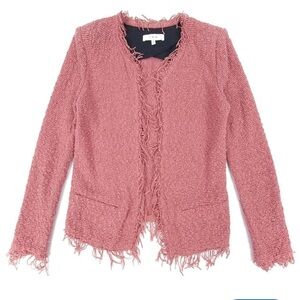 IRO Shavani Boucle Knit Fringe Pink Jacket