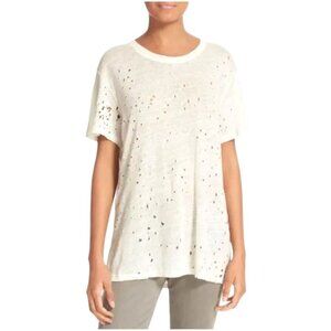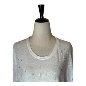 IRO Shirt Women Medium White Clay Cutout Distressed Linen Short Sleeve Tee