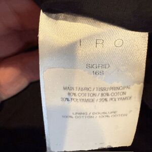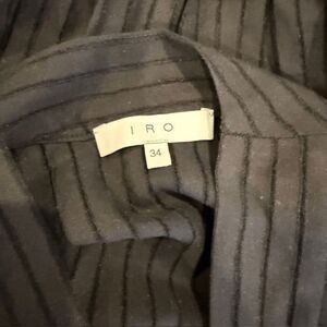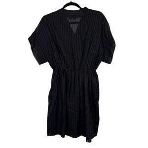 IRO Sigrid Black Mini Dress Elastic Waist Lined Skirt V-Neck Size 34 (XS). Side Zip. Excellent condition. See photos for details and unstretched measurements. View my closet to add other items and bundle to save with one shipping fee! Black with sheer striping, great for vacation, beach, travel, cover up, Summer, neutral