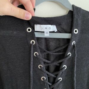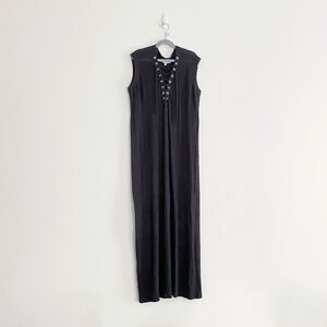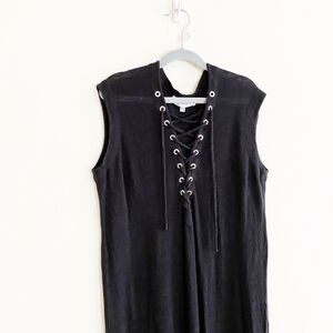 IRO Size XS Daisy Linen Knit Maxi Dress Lace Up V Neck Sleeveless Washed Black