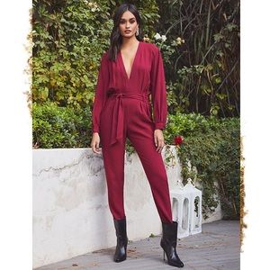 Tagging: #HolidayParty #LuxuryFashion #IROJumpsuit #HolidayOutfit #PartySeason #ElegantFashion #WeddingGuest #Cranberry