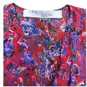IRO Structured Shoulder V-Neck Hurl Floral Silk Blouse size FR 32 (US XXS)