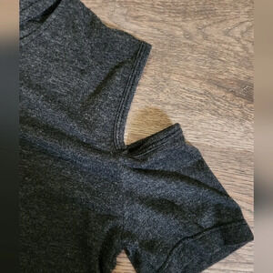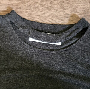 Dark grey cold shoulder short sleeve top with cutout band at neckline. No flaws.