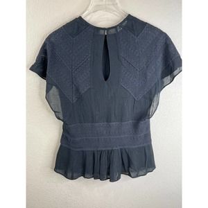 IRO Tamya Womens Flutter Sleeve Pleated Blouse Size 34 Black Keyhole Back