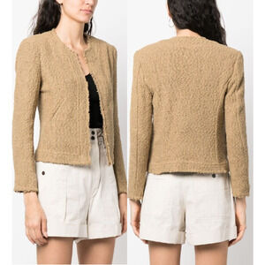IRO Taran Cotton Blend Long Sleeve Open Tweed Jacket Camel Brown Women's EU 36
