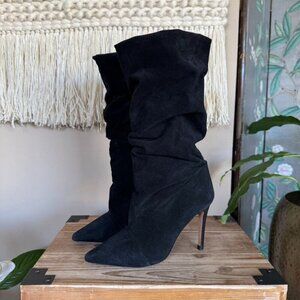 IRO The Stevie Gathered Slouch Black Suede Leather Heeled Boho Boots Size 38 / US Size 7