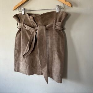 IRO Tie Waist Lamb Leather Mini Skirt in Taupe Size 36/ US S
