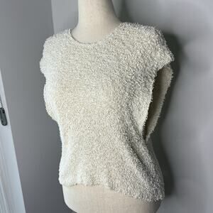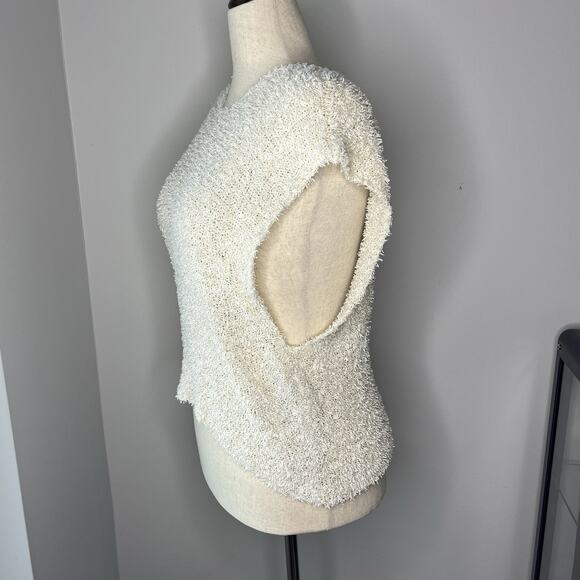 IRO Top Women's XS Oversized Eyelash Fringe Cream Low Armholes Knit Beach
