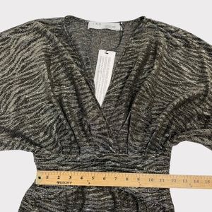 IRO Volsun Metallic Silver Surplice Zebra Midi Dress Size 32 US 0