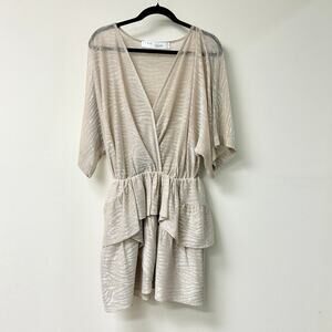 IRO Wide Shimmer Sheer Plunging Neck Blouson Mini Dress Gold Women's Size 36 / US 4