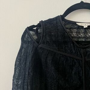 IRO Women's Elbow Length Sleeve Cold Shoulder V-Neck Lace Black Top Size Small