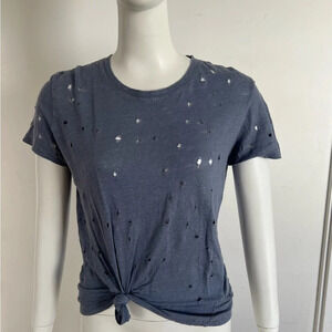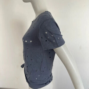 IRO Womens Short Sleeve Distressed Crew Neck Shirt Gray Size Small