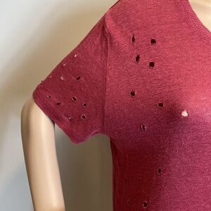 IRO burgundy linen distressed t-shirt lagenlook style size M