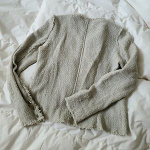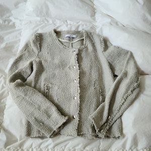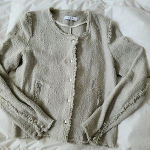 Grey IRO jacket with zipper and buttons, distressed knit, very cool and edgey. No stains, marks. Size 40.