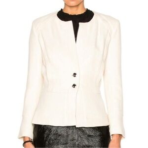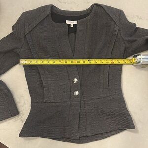 Timeless, dark grey, wool blend, jacket made by IRO Paris. Has 2 side pockets and 2 inner pockets. Also has silver buttons for a front closure and buttons at cuffs. Great condition!