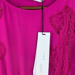 NWT. Please see photos for size chart. The tag says 34, which according to the size chart is XS size 2 in US sizing. Main fabric and lining: 100% viscose, Lace: 90% polyamide, 10% elastane. Dry clean only.