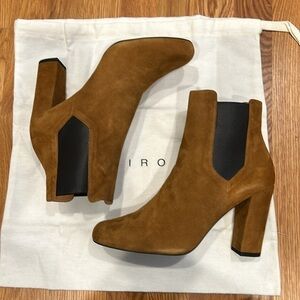 IRO suede leather 4” heel Chelsea Babies 90 ANKLE boots cognac tan and black