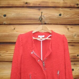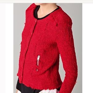 Zip up hip pockets. Dress up or down! Classic piece that any wardrobe needs. The Agnette Jacket by IRO takes on texture while maintaining a classic fit. Raw cut edges.