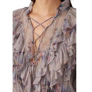 Airy ruffles add an ethereal element to this alluring floral mini dress from IRO.