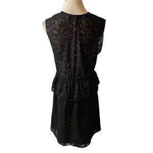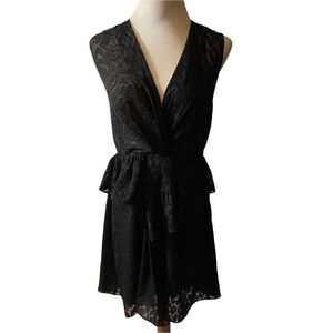 IRO Black Peplum Burnout Devore Leopard Pattern V Neck Dress - Size 2