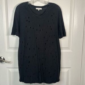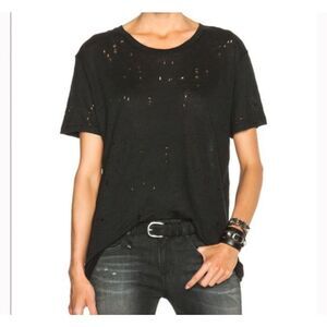 IRO Clay Black Distressed Tshirt Sz XL Linen Holes