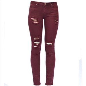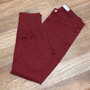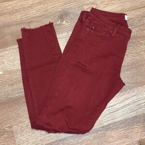 IRO Jarod Ajuste Distressed skinny jeans - size 29 - deep paprika red - 98.5 cotton 1.5 elastane - mid rise - distressing with raw hem.