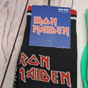 IRON MAIDEN / MOTLEY CRUE / AC DC Set of 3 Crew Socks ~ 80s & 90s Rock Bands