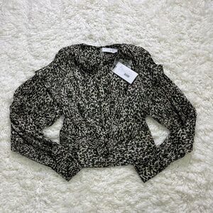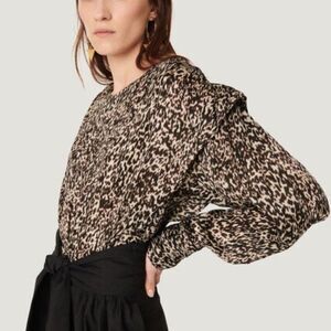 IRO Rusko Strong Shoulder Leopard Top in Ecru/Black/Brown