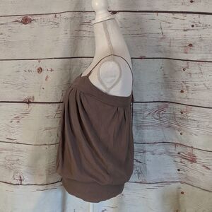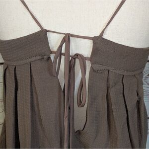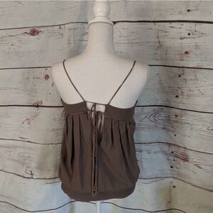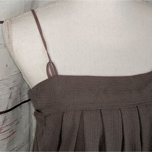 Beautiful dressy tank in a cocoa shade of brown. Lined. In good condition with some pulled threads throughout (refer to last photo). They are not very noticeable.
