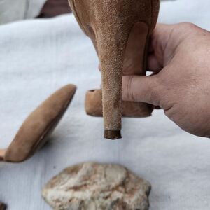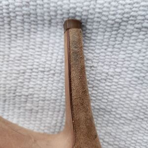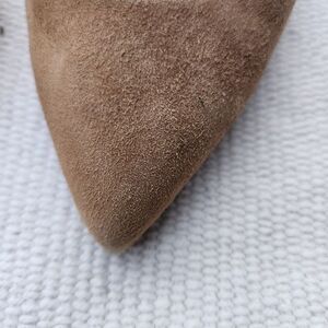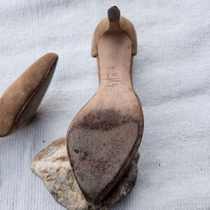stiletto heel d'orsay pumps in a camel suede color. Preloved condition. All sections of interest as well any known flaws have been documented in the photos and noted as thoroughly as possible. if there are no known flaws, none will be noted. Please feel free to ask any questions before purchase 🙂.