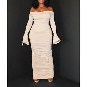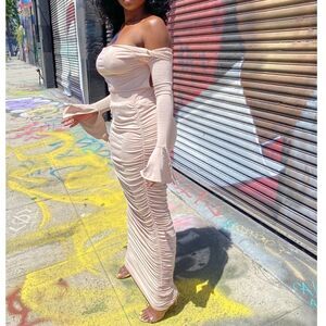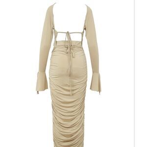This high-quality set includes a backless top with a stringed detailed back and is paired with the Rugged Knit ruched skirt.
