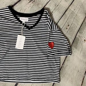 🆕 ISA & ELLA | Striped “Heart on My Sleeve” Cropped Tee. Size M