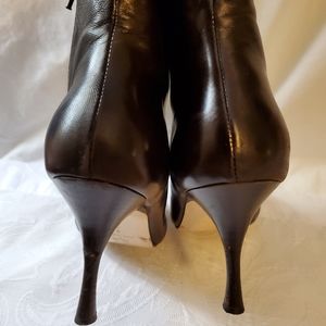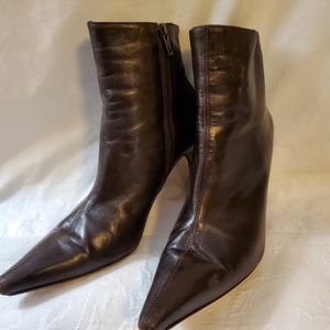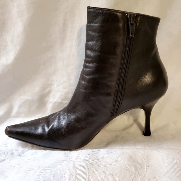 Dark brown mid books. Side zipper. Scuff on heel