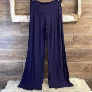 ISAAC LEIV Women's Fold Over Waist Palazzo Pants Navy Blue Size Medium