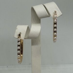 ISAAC MIZRAHI Gold Tone Pearl Oval Hoop Earrings. 2024WN-0010