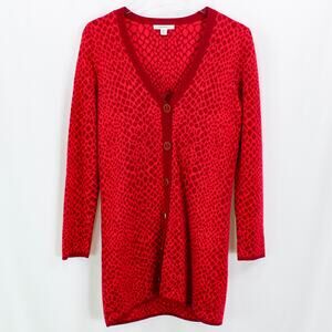 ISAAC MIZRAHI LIVE Red Snake Print V-Neck Cardigan Sweater