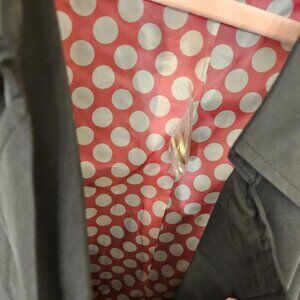 Brand new Coat from Isaac Mizrahi Live. Black with a nice belt. Interior lining is a nice pink color with White Dots. Gold Buttons. So Pretty and practical.