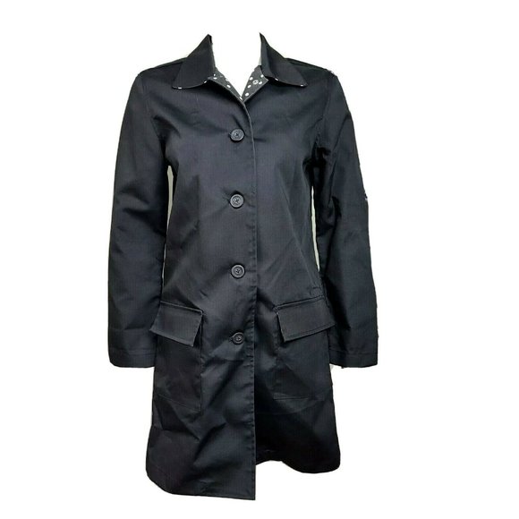 ISAAC MIZRAHI Target Solid All Black Long Trenchcoat Jacket Womens Size S Small