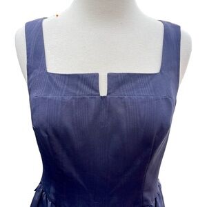 We love everything that ISAAC MIZRAHI creates for Target and this sweet dress is no exception. Featuring a blue watered taffeta with a square neckline and small notching detail. Back zipper. Fully lined in a contrasting lighter blue. Missing it’s original belt but it would look fantastic with a contrasting ribbon.