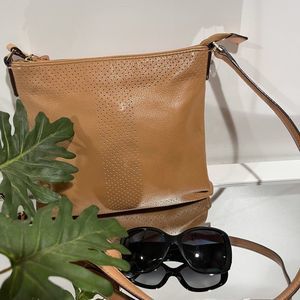 Very nice clean leather handyman. Leather has zipper inside. Top zipper and an adjustable strap.