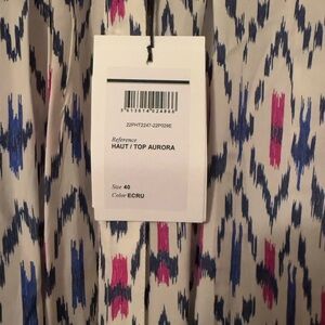 ISABEL ETOILE MARANT Aurora Printed Crepe Blouse in White Blue Pink FR40 US8 NWT