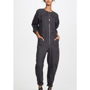 Stylish black jumpsuit perfect for any occasion. Comfortable and versatile design. 100% Cotton, washed black color. Tapered at the cuffs. Size 40. Fits like a 6-8.
